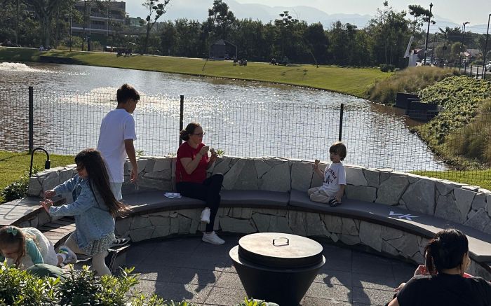 As praças do VivaPark dão espaço para curtir um piquenique em família com vista para os lagos, passeios de patinete, bike ou caminhada, além do parquinho para a criançada, pet place, pista de skate e fogueiras ao ar livre. Ao longo do espaço verde, também tem cadeiras e mesinhas espalhadas para curtir o ar livre.