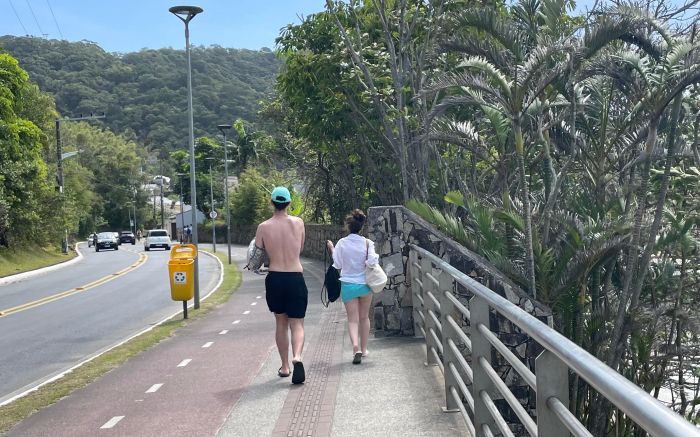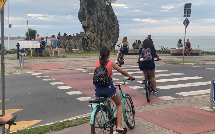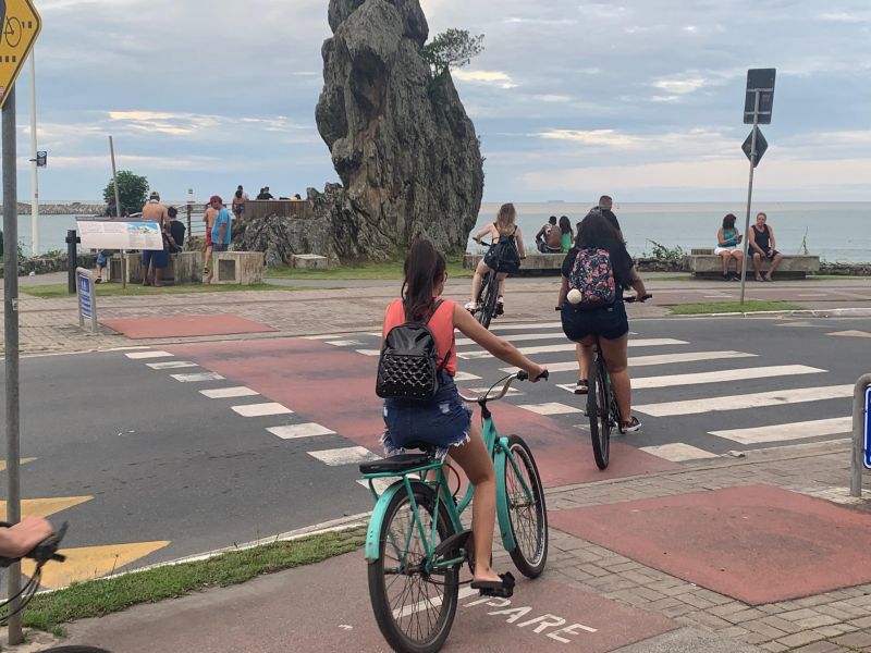 Uma boa opção de passeio ao ar livre é pedalar pela ciclovia que vai da avenida Beira Rio até a pracinha do Hotel Marambaia em Cabeçudas. O trajeto de 4,6 km leva cerca de 20 minutos e inclui a passagem pelo Bico do Papagaio, uma formação rochosa de 4,5 metros. Ao final, a recompensa é um mergulho na praia de Cabeçudas. Alguns pontos têm patinetes para locação para seguir o passeio pela ciclovia.