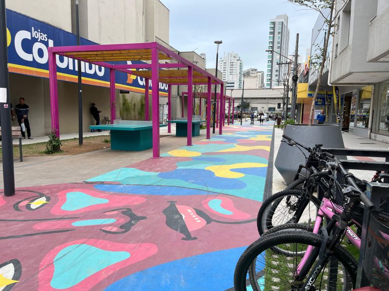 A rua Colorida liga a Praça dos Correios à rua Hercílio Luz e destaca-se pelo calçadão grafitado, que contrasta com o ambiente urbano. A rua possui mesas de tênis de mesa, balanços, bancos e bicicletários, promovendo um espaço de lazer e arte ao ar livre. É tudo free.