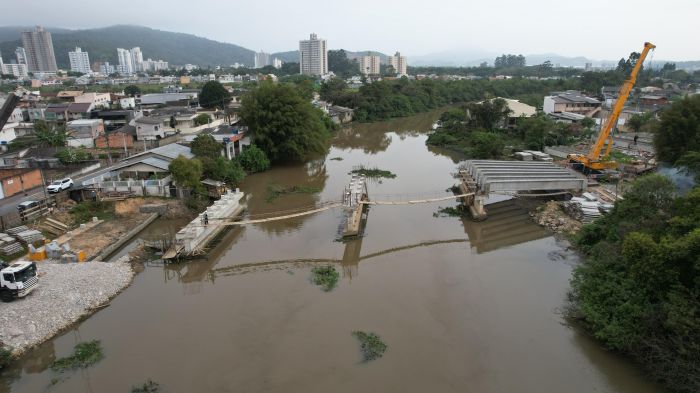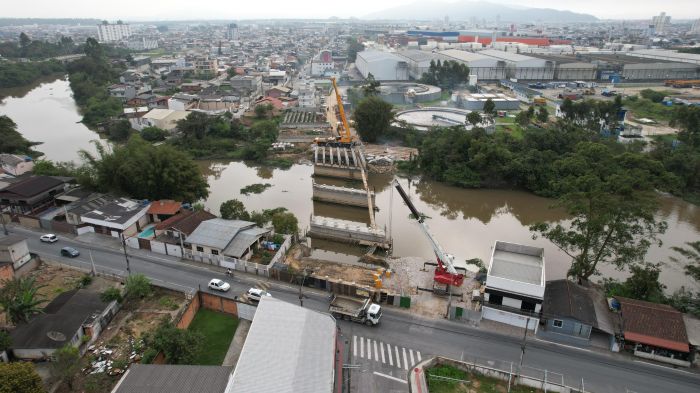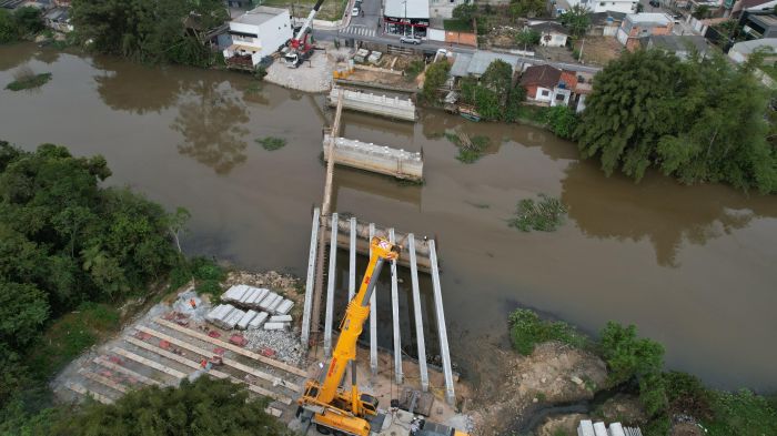 A obra da nova ponte entre os bairros São Judas e Cidade Nova, em Itajaí, entra na reta final e vai interromper o trânsito em um trecho da rua José Pereira Liberato, no bairro São Judas, nesta terça-feira, para a colocação das vigas na estrutura.