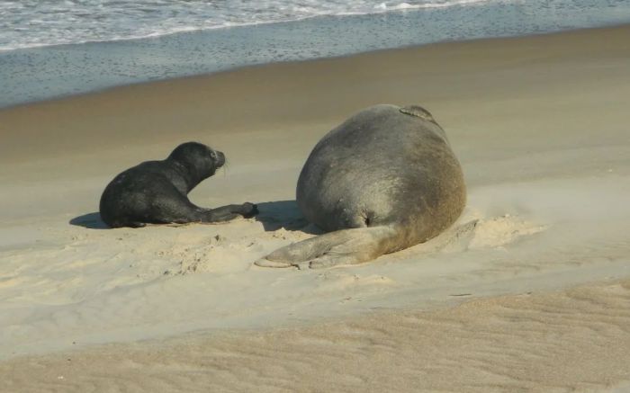 Quem perturbar a mãe e o filhote de elefante marinho em praia de SC pode ser preso