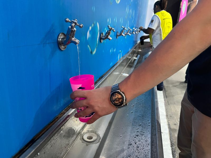 Nem só de chope vive o festeiro. E na hora de se hidratar, a melhor parte é que a água é geladinha e de graça. Os pavilhões da Marejada contam com vários bebedouros para abastecer os copos da galera. A distribuição de água do Semasa faz parte do Plano de Sustentabilidade do evento. A ideia é reduzir o descarte de garrafas pet.
