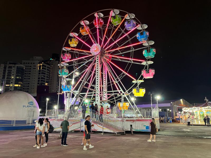 O parque de diversões da Marejada fica na parte externa da festa. São 15 atrações para todas as idades, com brinquedos, como roda gigante, carrossel, kamikaze, montanha-russa e twister. Cada ingresso custa R$ 15. O combo com cinco fichas sai por R$ 60.