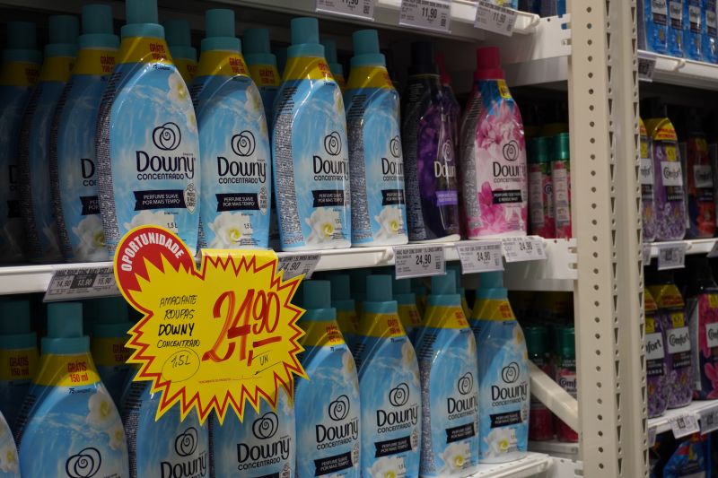 Outras ofertas incluem o amaciante de roupas Downy concentrado 1,5 litro por R$ 24,90, água sanitária Girando Sol 5L por R$ 9,98 e pasta de dente Colgate Total 12 a R$ 7,90. Para higiene pessoal, o sabonete Dove com oito unidades de 90g está por R$ 22,80 (cada unidade sai por R$ 2,85).