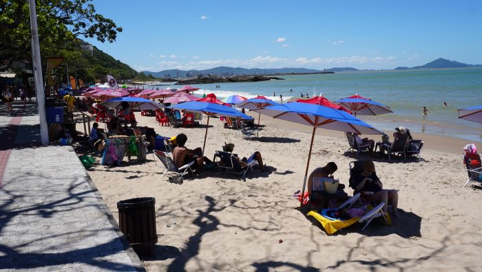 Um comerciante de Cabeçudas cobrou fiscalização dos órgãos da prefeitura pra que ambulantes e estabelecimentos respeitem as normas de atendimento na praia. Uma das regras da normativa é que apenas bares e restaurantes da Beira-mar, com licença para o serviço, têm permissão para colocar os equipamentos de praia, como cadeiras e guarda-sóis, para os banhistas e atender pedidos dos clientes na faixa de areia.