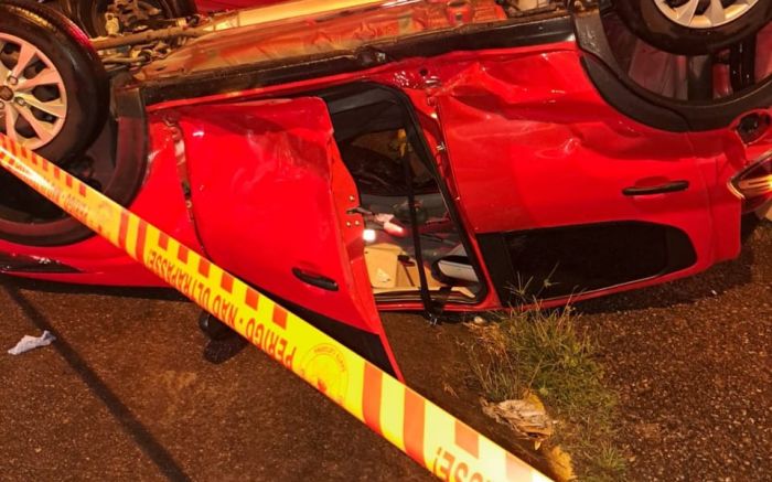 Um Fiat Mobi capotou na rua 460, esquina com a 460A, no bairro Morretes, em Itapema, na noite de véspera de Natal. O carro bateu num Volkswagen Fox pouco antes das 20h.
