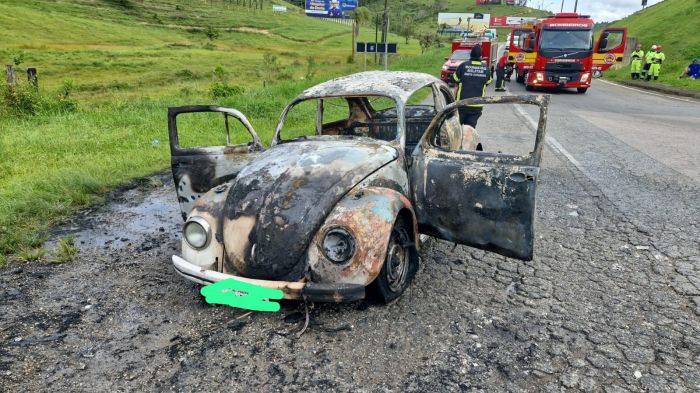 Fusca é destruído em incêndio na BR 101