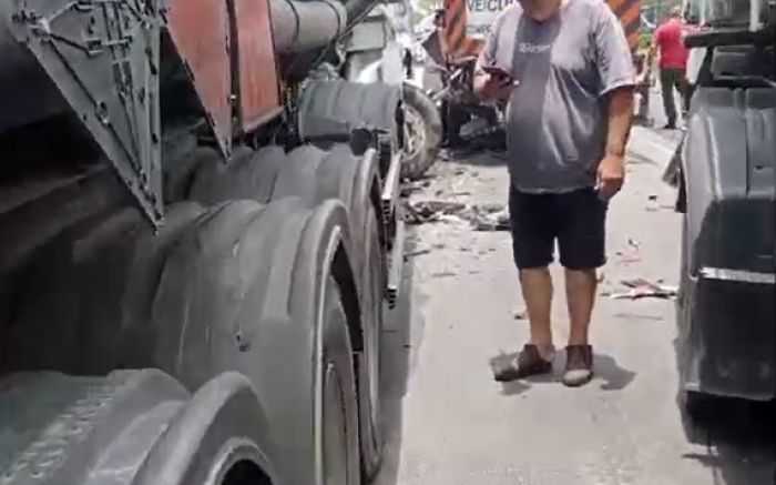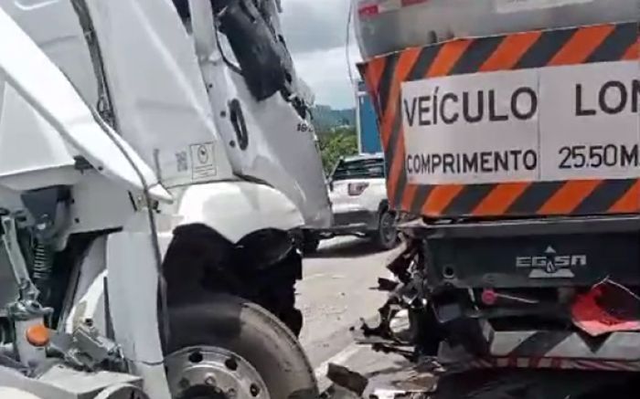 Acidente na BR 101 foi com dois caminhões e um carro; veja o vídeo
