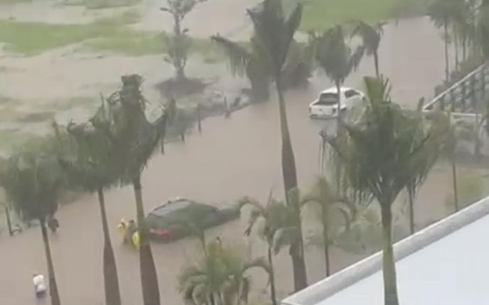 Vídeos mostram os estragos causados pelas ruas alagadas, como na área em frente ao condomínio Águas de Porto Belo, na entrada da cidade. Moradores também relataram que a água começou a invadir as lojas do Outlet Premium.