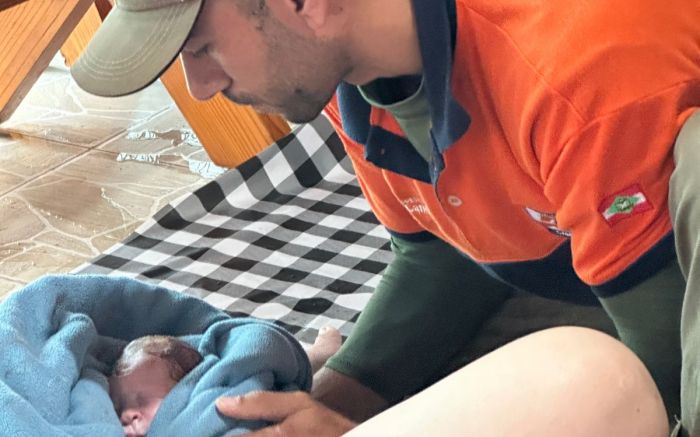 A chuvarada de quinta-feira foi marcada por um ato de heroísmo dos trabalhadores da Defesa Civil de Camboriú. Em meio à mobilização para atender ocorrências de alagamentos na cidade, a equipe foi surpreendida por um pedido de ajuda: o parto emergencial de uma moradora do bairro Monte Alegre.