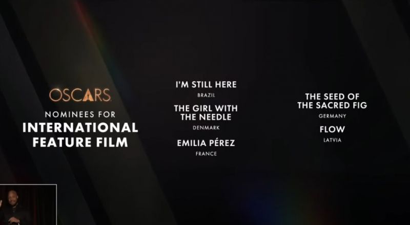 Já na categoria Filme Internacional, a história da família Paiva concorre contra “A Garota da Agulha” (Dinamarca), “Emilia Pérez” (França), “A Semente do Fruto Sagrado (Alemanha) e “Flow” (Letônia). Esta é a quinta indicação brasileira na categoria.
