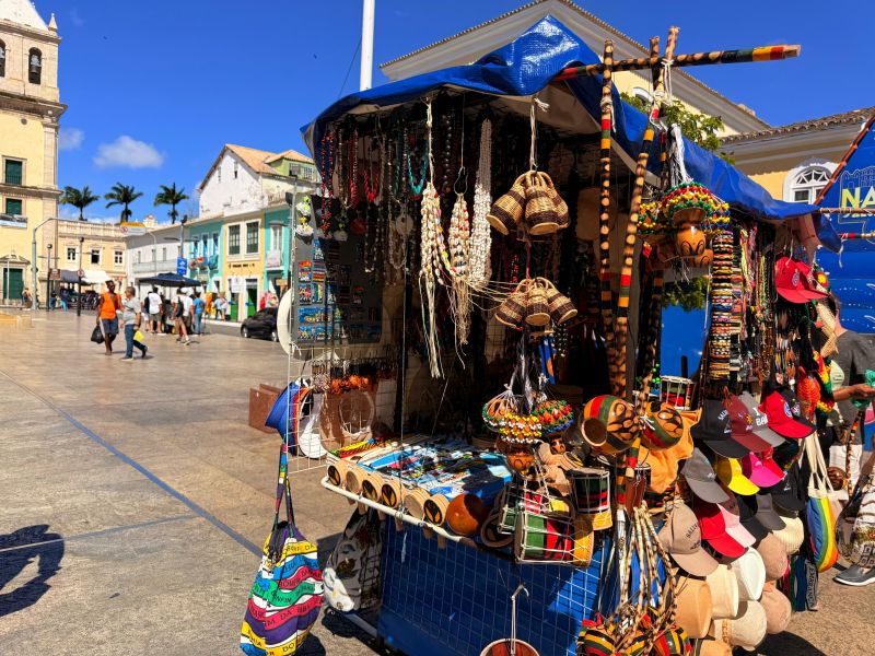 A loja fica no coração do Pelourinho. A poucos passos dali, é possível visitar uma feirinha de artesanato na praça da Sé, um dos espaços mais charmosos do Pelô. Dá para comprar um berimbau feito artesanalmente ou tomar uma caipirinha com frutas locais, como umbu, siriguela e cajá.