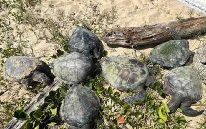 As redes de pesca continuam matando animais marinhos na região. Desta vez, foram sete tartarugas-verdes encontradas mortas na praia do Tabuleiro, em Barra Velha. A ocorrência foi no sábado passado, quando populares chamaram a equipe do projeto de Monitoramento de Praias da Univali.