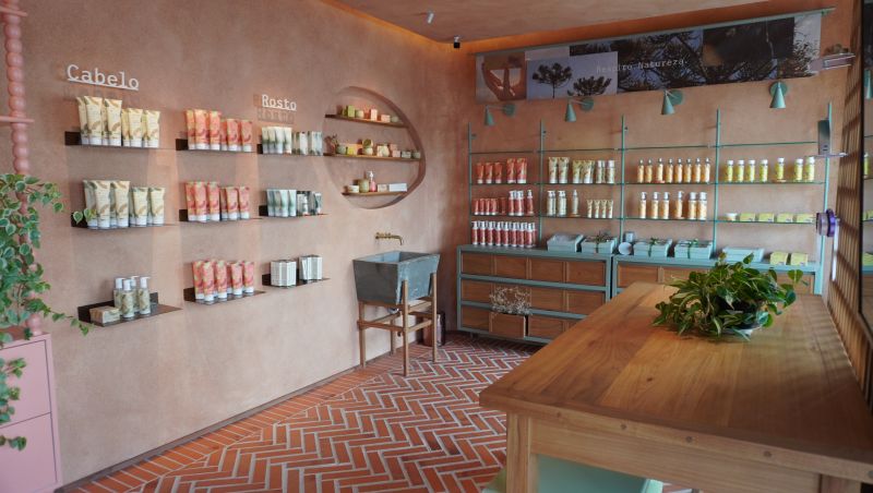 A experiência começa ainda do lado de fora, quando os olhos batem na fachada colorida. A arquitetura da loja definitivamente é um dos pontos altos. Mas, além das paredes e prateleiras coloridas, há duas salas para rituais sensoriais com foco em bem-estar profundo – e, é claro, feitos exclusivamente com produtos próprios.