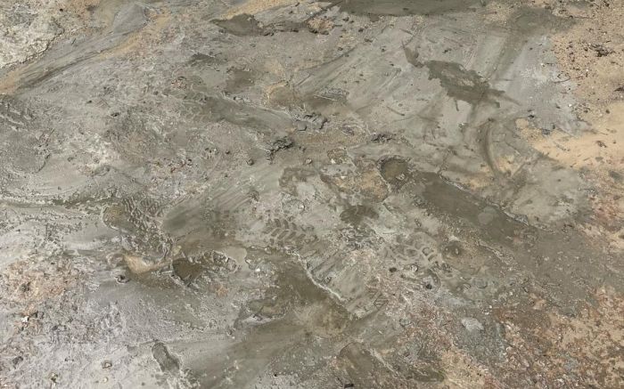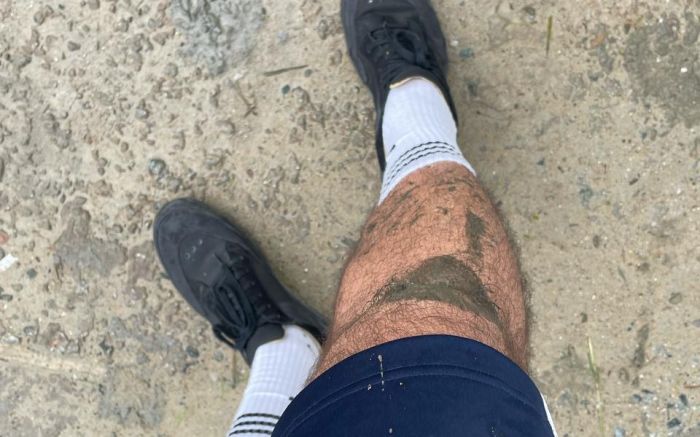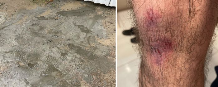 Confeiteiro escorrega e cai em lama de cimento na calçada