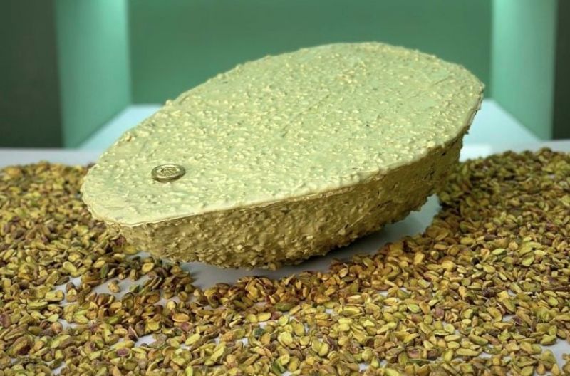 - 💚 Casca de chocolate + pistache californiano + creme artesanal + crocante. Um pedaço do Oriente em versão deluxe.