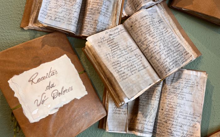 Batedores de bolo viraram luminárias. Os atendentes são treinados para narrar essas histórias, criando uma conexão afetiva com quem entra. E o livro de receitas ganhou uma réplica que está em exposição no local. “Quando coloco um bolo na mesa, a saudade de casa diminui”, compara Marina. “Família, pra mim, é isso: bolo, mesa cheia, afeto no prato.”