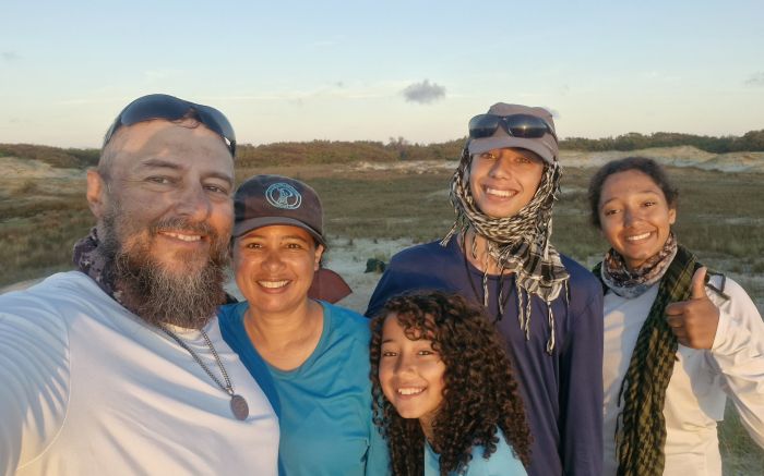 O casal Marcos e Marli, de 46 e 45 anos, levaram os filhos Gustavo, Michele e Claudia, de 17, 14 e 10 anos, para férias diferentes no Rio Grande do Sul. Entre os dias 17 a 27 de janeiro, a família topou o desafio de atravessar andando cerca de 220 quilômetros da praia do Cassino.