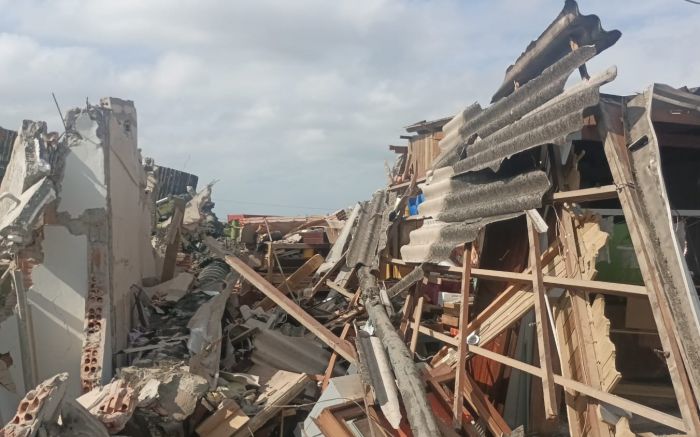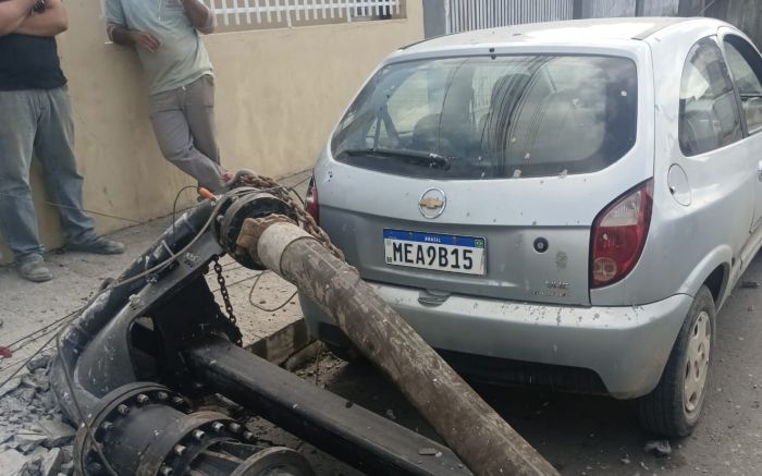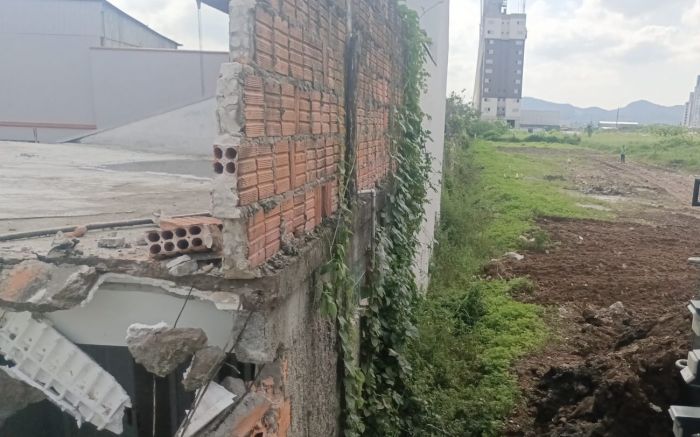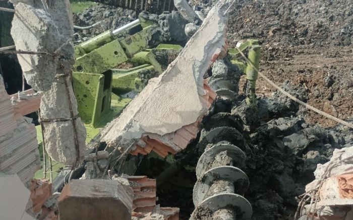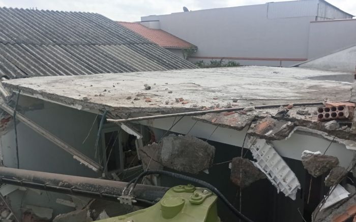 Máquina gigante despenca de construção e destrói três casas no bairro Cordeiros