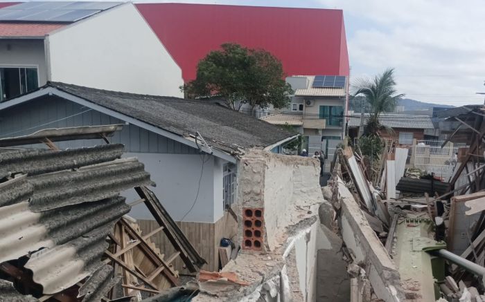 A queda da máquina também danificou a rede elétrica da Celesc, uma calçada e um Celta que estava estacionado na rua. Após avaliação do local, os bombeiros deixaram as casas sob responsabilidade da Coordenadoria Municipal de Defesa Civil. Os moradores das casas atingidas pelo equipamento foram para casas de parentes.