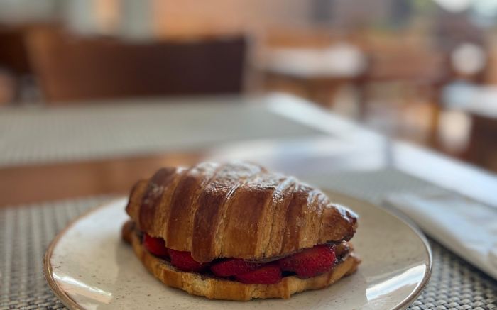 Outro destaque absoluto é o croissant de Nutella com morangos: uma combinação irresistível, perfeita para quem quer adoçar ainda mais a visita.