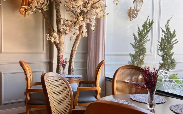 A estética do lugar é um convite à contemplação. Cada canto foi pensado para ser acolhedor e fotogênico: tem flores pendentes, iluminação suave, louças charmosas e um aroma que mistura café com natureza. Perfeito para quem ama criar conteúdo, registrar momentos especiais ou só curtir um lugar bonito em boa companhia.