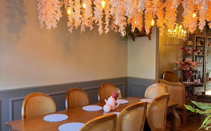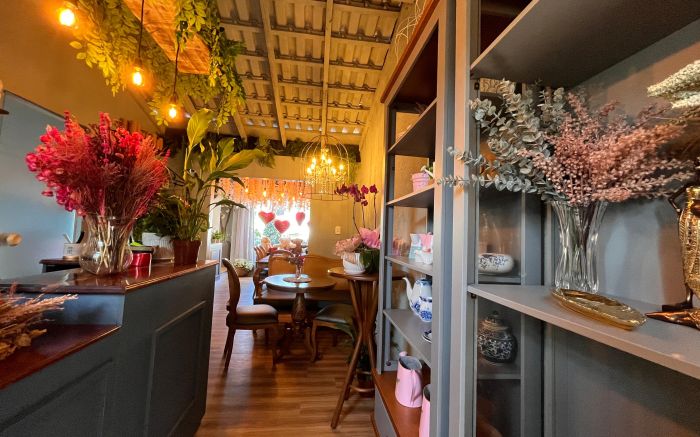 Além de ser uma cafeteria para todos os dias, a Flower and Coffee também abre espaço para momentos inesquecíveis. Dá para reservar o local para aniversários intimistas, encontros com amigas, mini weddings ou até reuniões de trabalho mais criativas. A equipe cuida de tudo com delicadeza, atenção aos detalhes e, claro, com flores e café. Para grupos a partir de 10 pessoas, há a opção de café colonial completo, servido no estilo mesa posta.