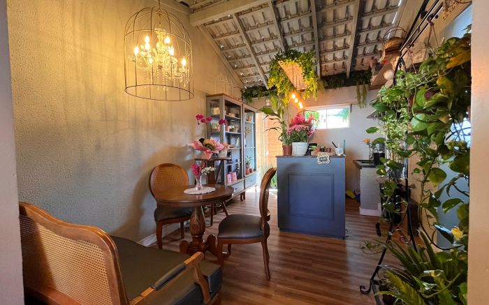 Uma floricultura que é cafeteria. Ou uma cafeteria dentro de uma floricultura? Não importa a ordem, o que importa é a experiência nesse cantinho encantador de Penha