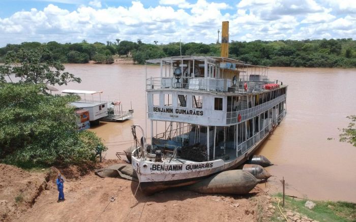 Quando a INC assumiu a obra inicial do Benjamin o navio estava abandonado às margens do rio São Francisco (Foto: Divulgação INC)