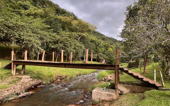 Carla, anfitriã do espaço, se emociona ao contar essa história. Ela e a mãe, dona Terezinha, compraram o terreno na charmosa rua da Santinha, com a ideia inicial de fazer um investimento. Mas bastou uma visita para se apaixonarem pelo cenário: vegetação por todos os lados e, bem no meio, um riacho de águas cristalinas que parecia sussurrar: “Fiquem.” E elas ficaram.