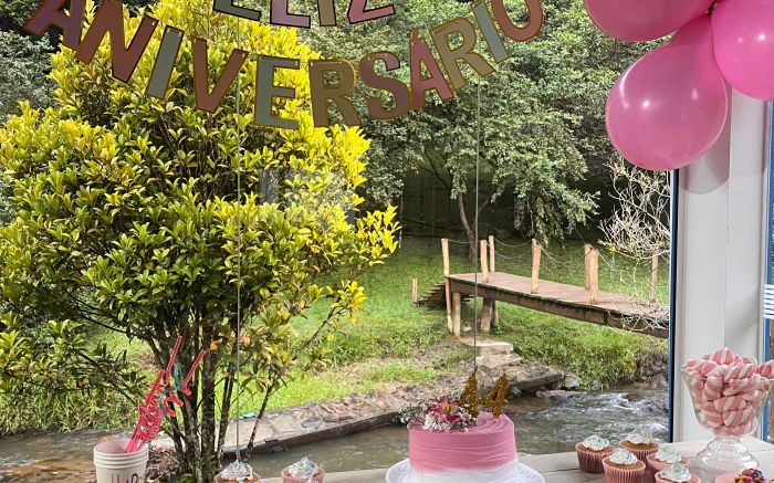 Se você está buscando um lugar especial para comemorar o aniversário, o Sítio Santa Terezinha é a escolha perfeita. O espaço recebe pequenos eventos intimistas em meio à natureza, com estrutura acolhedora, jardim florido, cozinha com vista panorâmica e uma energia única. É o tipo de celebração que fica na memória: simples, verdadeira e cheia de significado.
