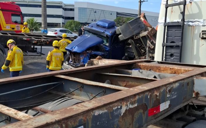 O motorista de um caminhão perdeu o controle ao não perceber o trânsito parado e ele atingiu em cheio a traseira de outro veículo que estava parado às margens da BR 470, em frente a um posto de combustíveis na manhã de terça-feira, em Navegantes.