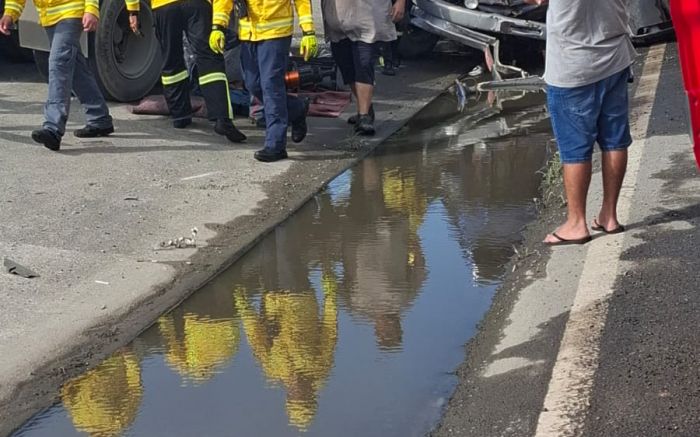 Engavetamento foi na manhã desta terça-feira e deixou motoristas feridos