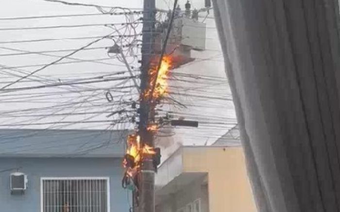 Um caminhão arrebentou fios da rede energia elétrica de um poste da avenida Nilo Bittencourt, no bairro São Vicente, em Itajaí, por volta das 14h desta quinta-feira, e provocou um incêndio na fiação bem perto de um transformador.