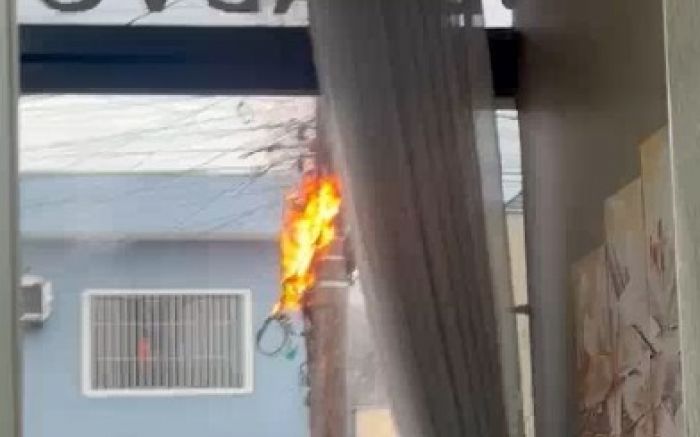 O poste que pegou fogo fica na altura do número 1295. Moradores contaram que o caminhão se enroscou nos fios até arrebentar. Além de provocar o incêndio, os cabos caíram no chão, oferecendo risco para quem transitava por ali.
