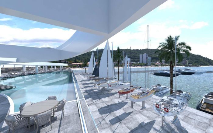 Pelo estudo inicial, a marina poderá comportar uma série de serviços e atrativos, entre restaurante, espaço gourmet, salões de festas, academia, pub, saunas, quadras de tênis e de padel, piscinas com vista para o mar e espaço para lojas. A construção do complexo é prevista com recursos da própria construtora e de investidores parceiros.