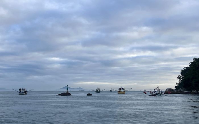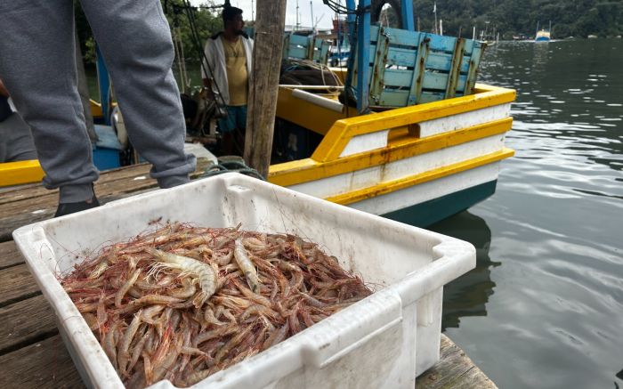 Pescadores pegam 65 kg de camarão durante arrasto tradicional em Balneário Camboriú