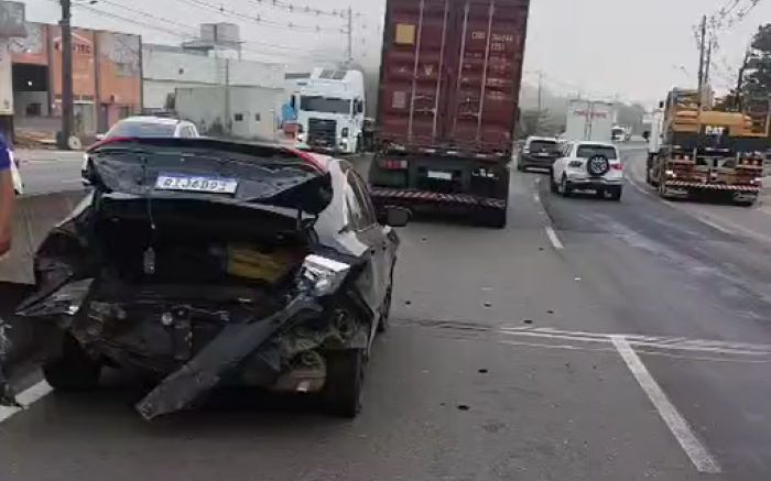 Caminhão dá freada na Antônio Heil e três carros batem atrás