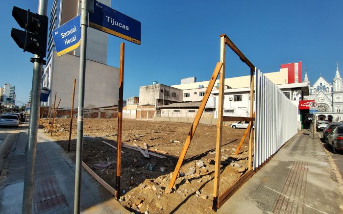 O visual do cruzamento das ruas Tijucas e Samuel Heusi, no centro de Itajaí, está diferente desde a semana passada. Os imóveis onde funcionavam uma loja de celulares, um salão de cabeleireiro e a Mac Bordados e Enxovais foram demolidos, e o terreno foi limpo para abrigar um novo arranha-céu previsto para a cidade.