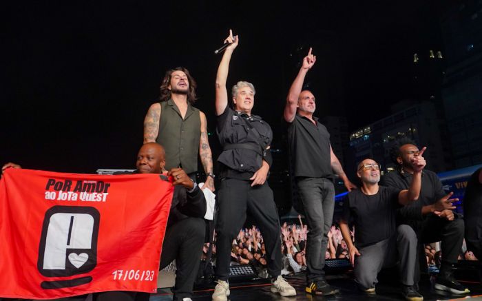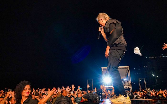 O grupo liderado por Rogério Flausino levantou o público com grandes sucessos como “Só hoje”, “Do seu lado”, “Fácil”, “Amor maior” e “Dias melhores”, além de novos hits como “Eu queria ser”, uma homenagem à cantora Rita Lee, que integra o novo álbum lançado em 2024, chamado “De volta ao novo”.