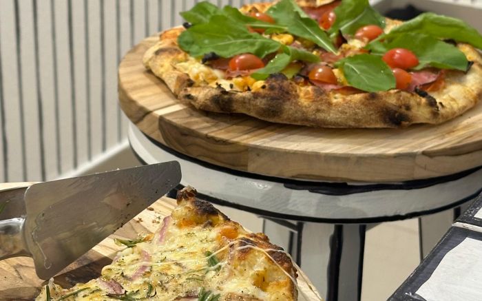 No meio dessa imersão estética, surge o aroma irresistível das pizzas artesanais e das empanadas argentinas — algumas com receitas exclusivas, como a famosa pizza de cebola criada pelo chef, que só existe ali.