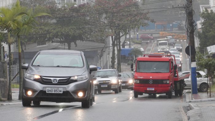 Carro quebra na chuva e trava avenida das Gaivotas