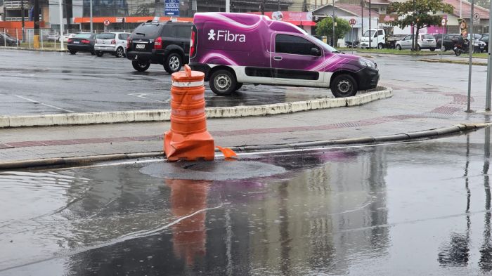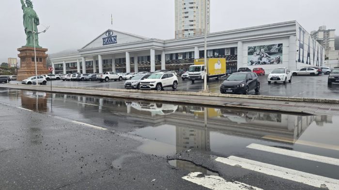Um problema na galeria pluvial alagou a avenida Sete de Setembro, em frente à loja Havan, no bairro Fazenda, em Itajaí. Um cone foi colocado na tarde desta sexta-feira para sinalizar o buraco na pista da avenida. Inicialmente, havia a informação de que a situação seria responsabilidade do Semasa. No entanto, a autarquia de água e esgoto de Itajaí informou que a falha é de responsabilidade da secretaria de Obras.