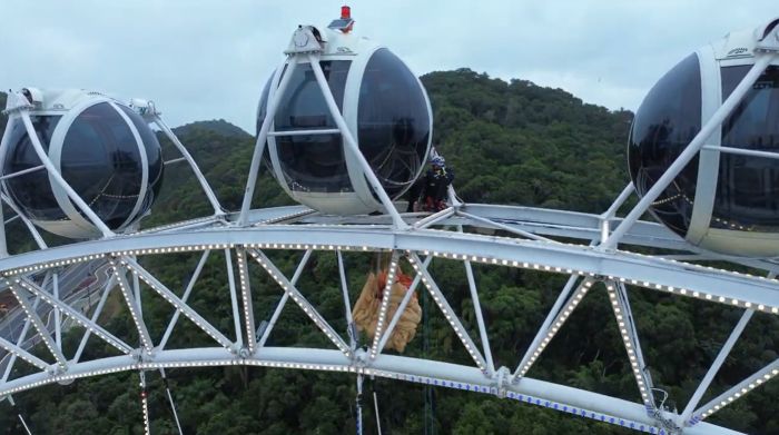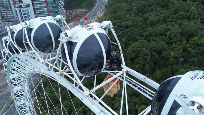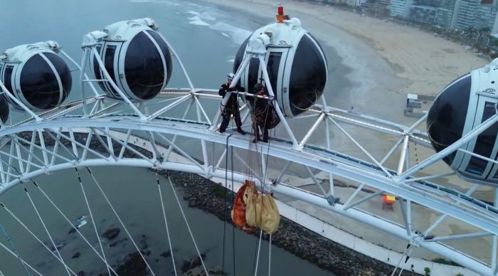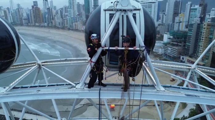 Sirenes, movimentação de socorristas e um parapente caído no topo da FG Big Wheel agitaram o sábado de manhã no pontal norte, em Balneário Camboriú. Toda a ação fazia parte de um treinamento na roda-gigante que buscou preparar a equipe catarinense do Corpo de Bombeiros para representar Santa Catarina no maior evento técnico de salvamento em altura da América Latina. O cenário da roda-gigante reproduz as situações que a equipe enfrentará na competição que inicia nesta terça-feira, em São Paulo.