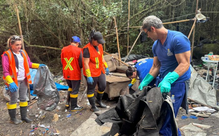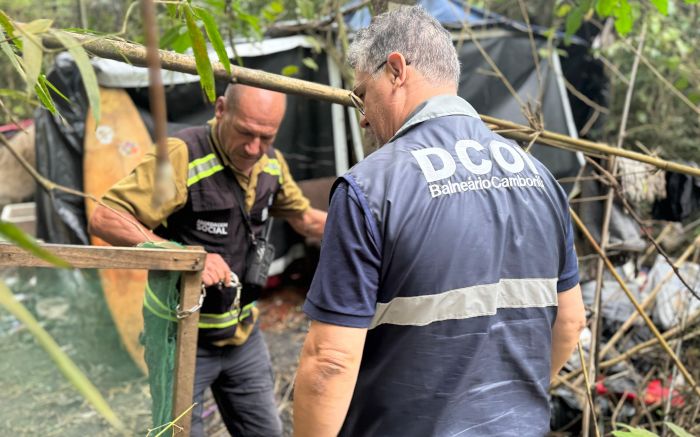 Uma invasão em área de mata no bairro da Barra, em Balneário Camboriú, foi desmontada na última quarta-feira. A ação foi da Diretoria de Contenção de Ocupações Irregulares e Degradação Ambiental (DCOI), com apoio da Guarda Municipal, da Abordagem Social e da secretaria de Obras da região sul.