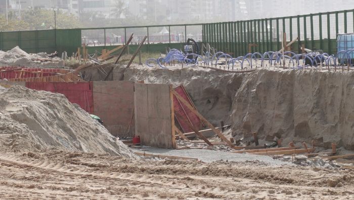 As obras da nova etapa da reurbanização da orla ganharam identificação visual nos tapumes e seguem em andamento no trecho da rua 3920, na Barra Sul. O projeto contempla a construção de um muro de contenção subterrâneo que já está ganhando forma. A estrutura de concreto armado terá dois metros de profundidade e vai servir pra conter a erosão costeira e proteger a orla.