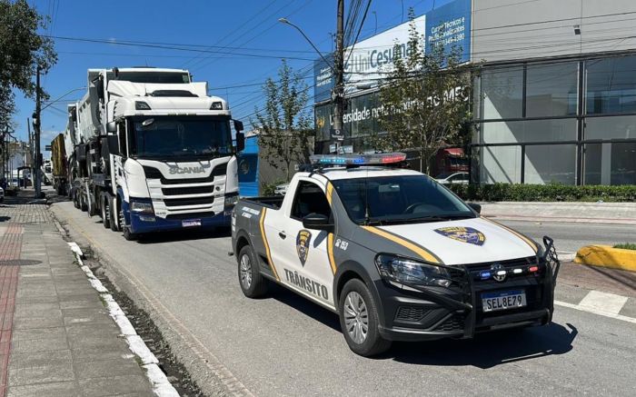 Uma das carretas, que transportava um caminhão em cima, atingia 4,83 metros de altura — estando acima do limite de 4,4 metros previsto na resolução 882/2021 do Contran. A irregularidade causou impacto no trânsito das avenidas Reinaldo Schmithausen e Caninana, além de danificar fiações elétricas.