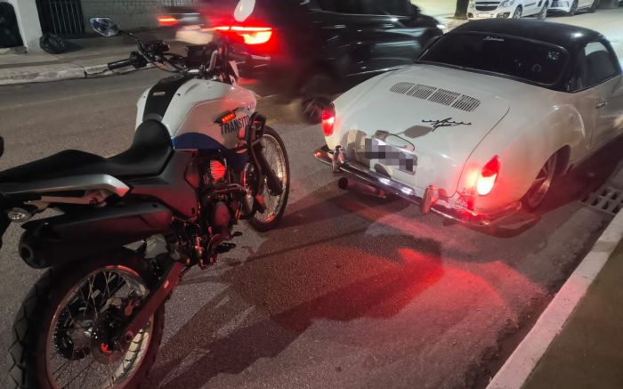Um Karmann foi autuado na rua Miguel Matte e teve o documento recolhido. Já na rua 1800, uma Yamaha XTZ 125, além da irregularidade estava com o licenciamento vencido e foi apreendida ao pátio.