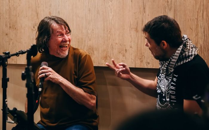 “Um ensaio que diz muito sobre como será o espetáculo de hoje à noite!! As vozes de Lenine e João Cavalcanti, unidas aos arranjos inéditos tocados por nós, irão ecoar em Itajaí!”, diz o post da Orquestra Brasileira.