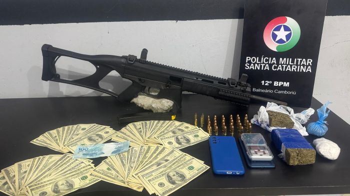 Um traficante de 26 anos foi preso na noite de segunda com cerca de 25 mil dólares, além de maconha, crack, cocaína, munições e uma bicicleta furtada. A prisão foi na rua Monte Pedra Açu, no bairro Monte Alegre, em Camboriú.